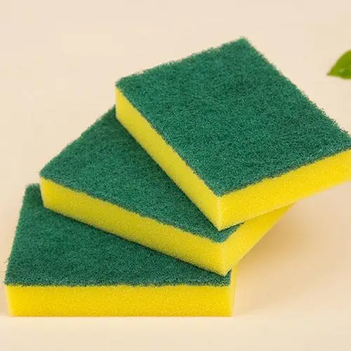 清潔海綿吸水性好起泡豐富,百潔布刮擦力大去污強(qiáng),海綿百潔布組合之后具有雙重清潔功效,一面海綿的柔軟,一面百潔布的堅硬。黃色海綿復(fù)合綠色百潔布是我們常見的,然而黃色海綿的缺點在于,污垢藏匿在海綿孔洞里很難清洗干凈,容易發(fā)霉變質(zhì),現(xiàn)在十分流行的神奇魔力海綿擦可以彌補(bǔ)這一缺陷。